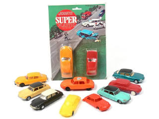 états de 'A+' à 'D' - on y retrouve notamment les marques : INJECTAPLASTIC, POLITOYS, PILEN & IZOLA - 2 modèles regroupés sous un blister jamais ouvert & un autre avec un axe de roues cassé - quelques carrosseries encrassées & axes de roues oxydés