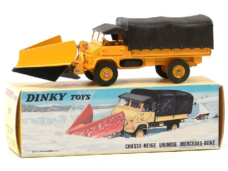 DINKY TOYS (FRANCE) 567 MERCEDES UNIMOG Chasse-neige jaune & noir, bâche marron foncé