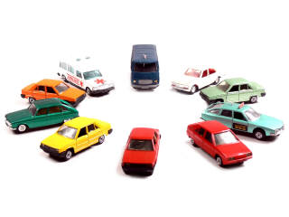 miniatures reproduisant les modèles : CITROËN, RENAULT, PEUGEOT & MERCEDES - carrosseries légèrement encrassées