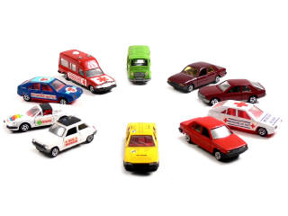 miniatures reproduisant les modèles : CITROËN, RENAULT, PEUGEOT, MERCEDES & FERRARI (état 'B') - carrosseries légèrement encrassées
