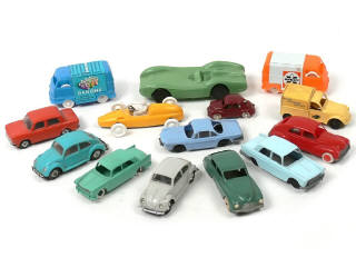 états de 'B' à 'D' - miniatures reproduisant les modèles : PEUGEOT, RENAULT, CITROEN, SIMCA, VOLKSWAGEN, MERCEDES, COOPER & HOTCHKISS - on y retrouve les marques : ECF, BS, CLE, DV, SESAME, NOREV, MINIALUXE & BONUX - quelques petits manques & certains axes de roues oxydés