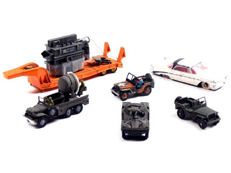 DINKY TOYS (FRANCE) Ensemble de 5 véhicules, une remorque & un transformateur