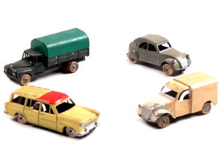 états de 'D' à 'R' - miniatures reproduisant les modèles CITROËN (manque un pneu de secours sur un véhicule) & SIMCA - on y retrouve les marques JRD & QUIRALU