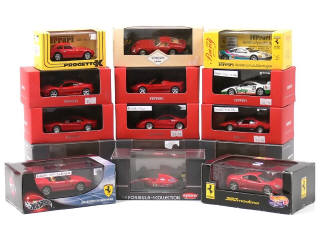 miniatures reproduisant les modèles : 360 MODENA (2 exemplaires différents), 550 BARCHETTA PININFARINA, F92A (4 exemplaires identiques), BB 512, F40 LE MANS 1994, 250 MM LE MANS 1952, 348 CHALLENGE, 300, 360 SPIDER, 288 GTO & F40 - on y retrouve les marques : KYOSHO, BANG, HOTWHEELS, CORGI TOYS, PROGETTO K & IXO - possibilité de petits manques