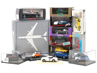 états de 'A' à 'B' - miniatures reproduisant les modèles : BOEING, RENAULT, FORD, ALPINE RENAULT, MERCURY, PORSCHE, BMW, CITROEN, MERCEDES, VOLKSWAGEN & FERRARI - on y retrouve notamment les marques : PARADCAR, ELIGOR, SOLIDO, VITESSE, MINICHAMPS, GTS, VEREM, HONGWELL TOYS, RIO, LLEDO & SCHABAK - quelques petits manques & parties cassées