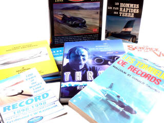 comprend : THE LAND SPEED RECORD - LES HOMMES LES PLUS RAPIDES SUR TERRE - RENAULT ET LA COMPETITION - LAND SPEED RECORD BREAKERS - RECORD 1898-1998 - LES TOMBEURS DE RECORDS - THRUST& THE FASTEST MEN ON EARTH - on y joint un magazine 'LA SCIENCE ET LA VIE' de mars 1938