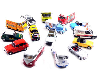 miniatures reproduisant les modèles : HONDA, VOLKSWAGEN, RENAULT, MORRIS, MERCEDES & CITROËN - manque 2 rétroviseurs sur 2 voitures