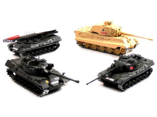 états de 'B' à 'D' - miniatures reproduisant les modèles TIGRE II (une fixation & un câblage non d'origine) & LEOPARD (3 versions différentes) - on y retrouve les marques MEBETOYS & POLISTIL - quelques manques