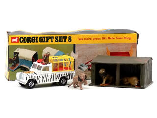CORGI TOYS (GB) GS8 Coffret LAND ROVER 'LIONS OF LONGLEAT' blanc, zébré noir