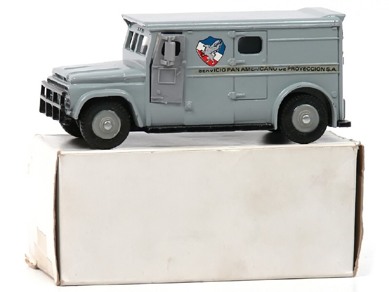 'SERVICIO PAN AMERICANO DE PROTECCION S.A.' - ce modèle fait partie d'une petite série produite pour la société de transports de fonds mexicaine Luis R. PICASO MANRIQUES - pourtours des jantes légèrement fondus - on y joint une boîte blanche vierge qui devait normalement recevoir l'étiquette de la société - petits manques sur les décalques de ceinture de caisse
