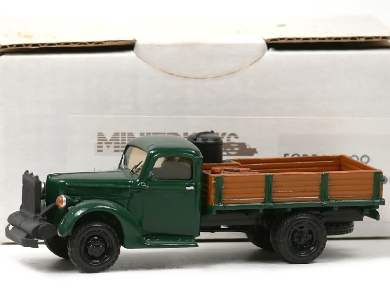 MINITRUCKS (FRANCE) FORD V3000 Plateau à ridelles basses avec gazogène vert foncé & marron