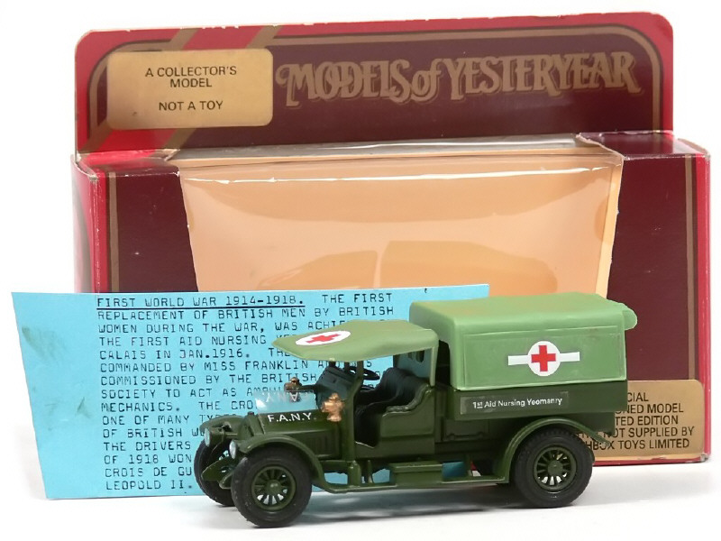DIVERS (GB) CROSSLEY Ambulance militaire bâchée 1916 'FIRST AID NURSING YEOMANRY' kaki, bâches vertes