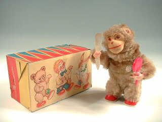 mécanisme à clef (fonctionne) - en action le singe se coiffe & se regarde dans le miroir (recollé)