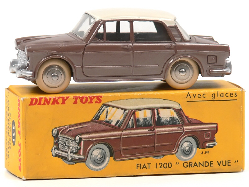 DINKY TOYS (FRANCE) 531 FIAT 1200 GRANDE VUE (version avec jantes convexes) havane métal, toit crème