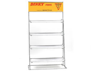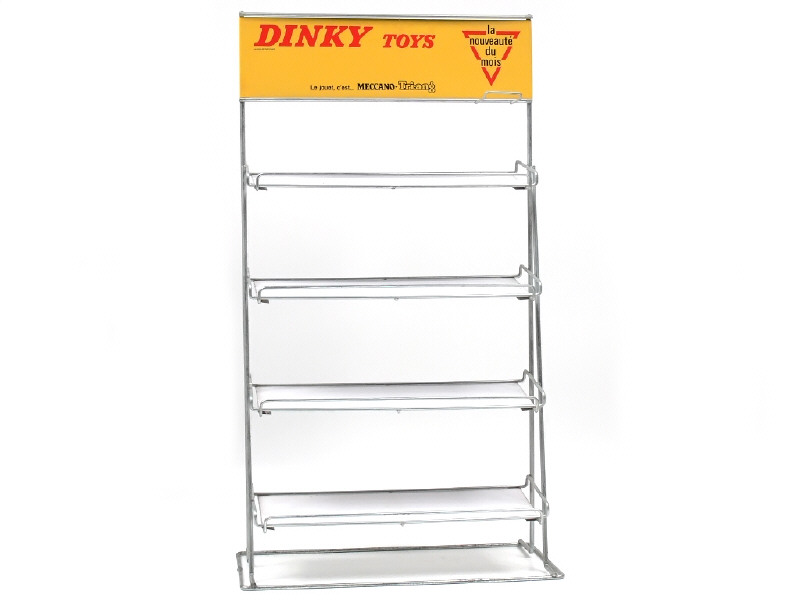 LE PRESENTOIR PUBLICITAIRE CEDIREP (FRANCE) Présentoir de détaillant en métal 'DINKY TOYS' jaune & blanc cassé