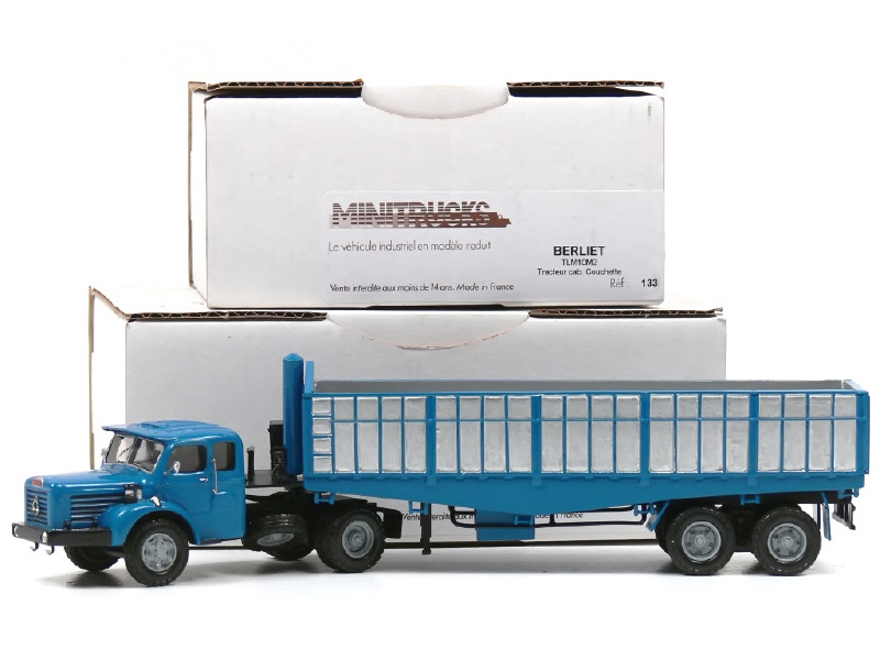 MINITRUCKS (FRANCE) 133/134 BERLIET TLM10 M2 Tracteur-cabine couchette semi-remorque benne 'BAJ & FOND' bleu, gris métal & noir