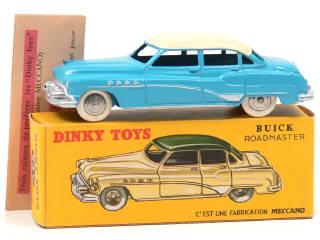 DINKY TOYS (FRANCE) 24V BUICK ROADMASTER (version avec intérieur de toit quadrillé & jantes chromées) bleu, toit crème
