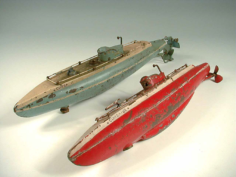 longueur :41 cm - moteur à clef (fonctionne) - manque les 2 gouvernails & les bouchons de ballast & d'orifice de remontage du moteur