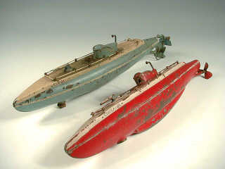 longueur :41 cm - moteur à clef (à revoir) - avec gouvernail de plongée & ballast - manque le bouchon de l'orifice de remontage du moteur