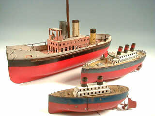 DIVERS Petit paquebot en tôle peinte rouge & bleu
