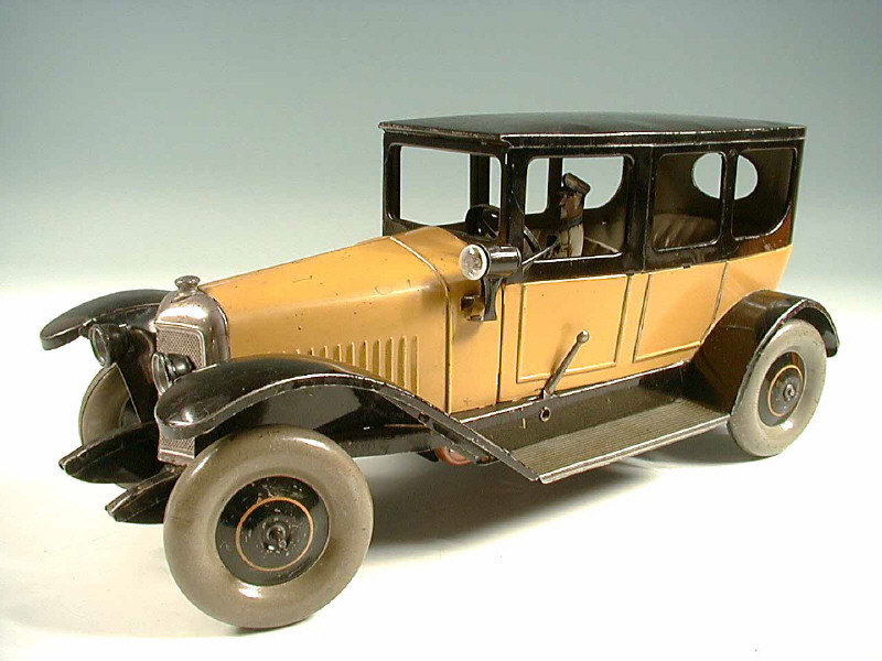 longueur :34 cm - moteur à ressort (fonctionne) - avec phare électrique, direction & chauffeur - restaurations