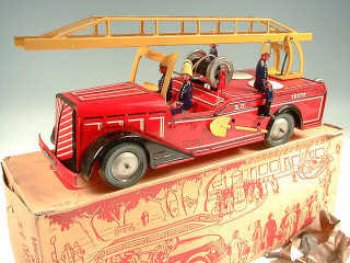 JOUSTRA (FRANCE) 429 Camion de pompiers 'LE VULCAIN' en tôle lithographiée rouge & jaune
