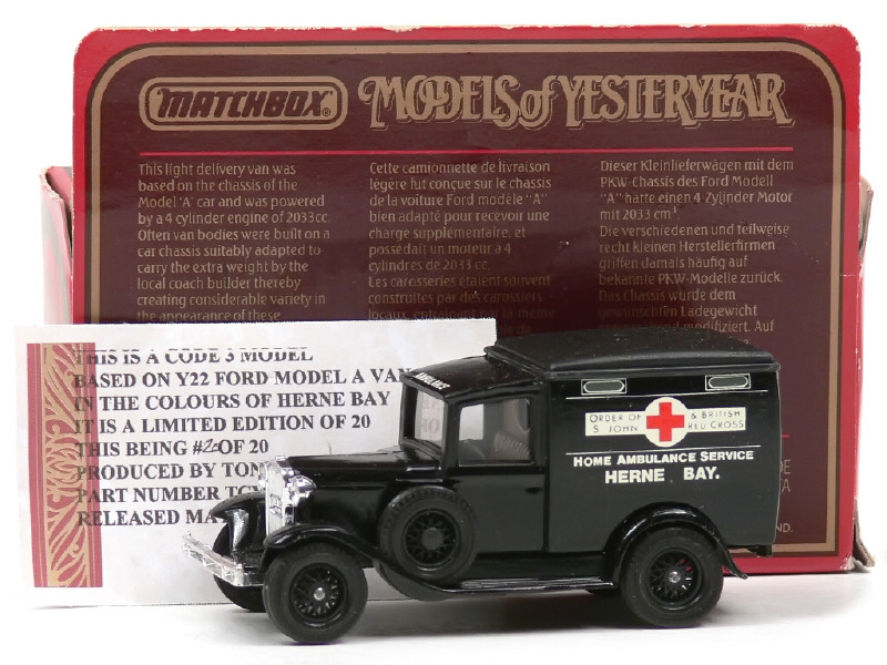 TONYS COLLECTABLES (GB) TCY11 FORD A Van 'HERNE BAY AMBULANCE' noir