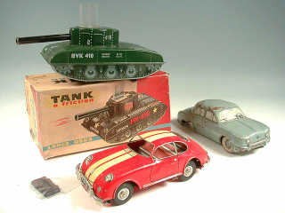 longueur : 23 cm - moteur à friction (fonctionne) - mécanisme de projection des obus cassé - avec 6 obus