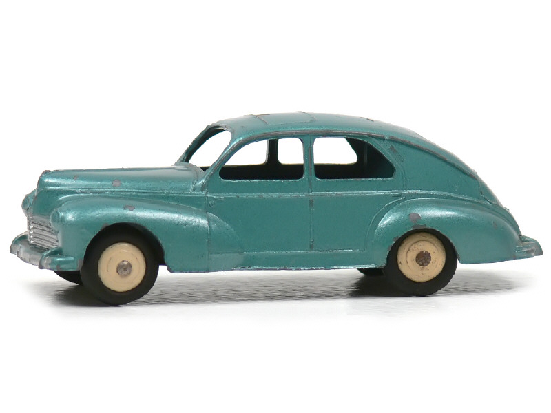 DINKY TOYS (FRANCE) 24R PEUGEOT 203 Petite lunette arrière (version avec intérieur de toit & ailes lisses) bleu métal, jantes crème