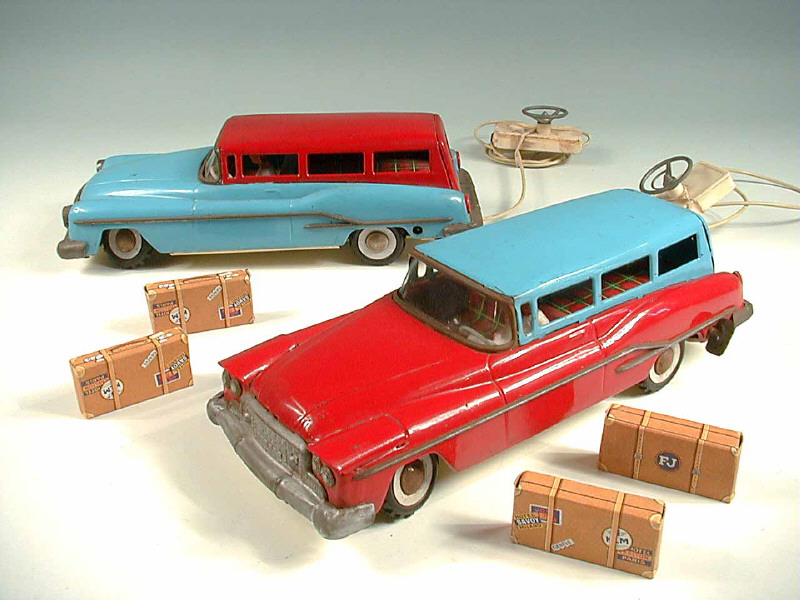 FRANCE JOUETS (FRANCE) Voiture américaine break en tôle peinte rouge, toit bleu ciel