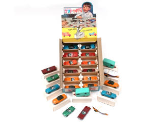 série TUF-TOTS - contient : 6 DODGE DART cabriolet (4 modèles décapotés & 2 autres capotés), 4 CHEVROLET CORVETTE cabriolet, 4 MERCEDES 280 SL cabriolet (2 modèles capotés & 2 autres décapotés), 6 CITROEN DS cabriolet (4 véhicules capotés & 2 autres décapotées), 2 caravanes & 2 hors-bord sur remorque - chaque voiture possède son carton individuel