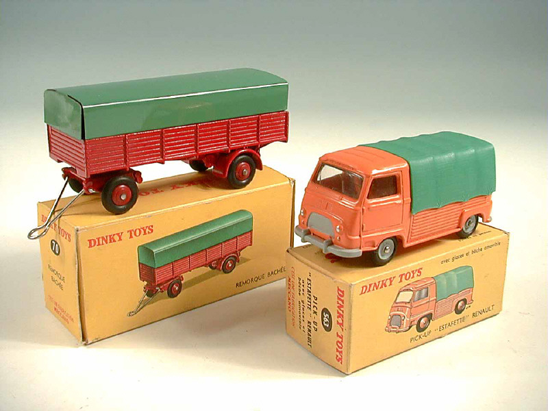 DINKY TOYS (FRANCE) 70 Remorque bâchée (version avec jantes convexes) rouge, bâche verte