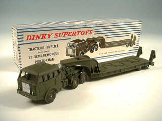 DINKY TOYS (FRANCE) 890 BERLIET Transport de char (version avec jantes du tracteur concaves & de la remorque convexes) kaki