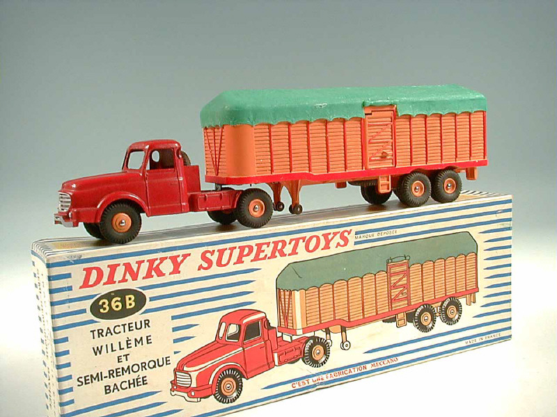 DINKY TOYS (FRANCE) 36B WILLEME Semi-remorque bâché (version avec jantes convexes) rouge & orange, bâche verte
