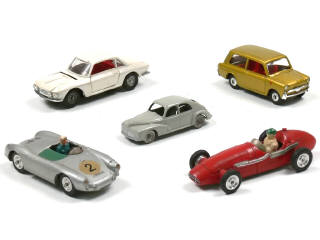 états de 'A' à 'D' - miniatures reproduisant les modèles : AUTOBIANCHI, PEUGEOT, LANCIA (manque moteur), MASERATI (sortie d'échappement incomplète) & PORSCHE (plancher dériveté & recollé, pilote non d'origine) - on y retrouve les marques : POLITOYS, MERCURY & SOLIDO