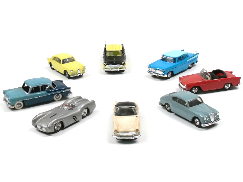 états de 'A-' à 'C' - miniatures reproduisant les modèles : ALFA ROMEO, MERCEDES (saute vent déformé), LANCIA & SIMCA (5 véhicules différents) - quelques manques - 2 antennes absentes - parties repeintes sur 3 voitures