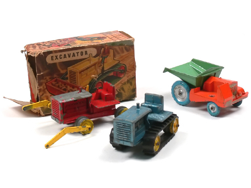 états de 'E' à 'F' - comprend : 2 bull dozer (un modèle en boîte en état 'd') & un dumper