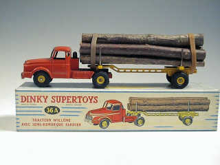 DINKY TOYS (FRANCE) 36A WILLEME Fardier (version avec jantes convexes & remorque ajourée) orange & jaune