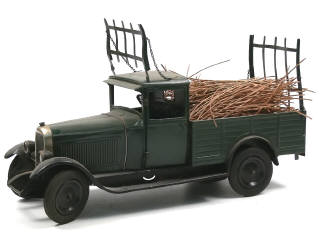 longueur 49 cm - fabrication de 1933/1934 - moteur à clef (fonctionne) - avec chargement non d'origine - une chaînette de toit cassée - traces d'oxydation sur les bas de caisse & à l'intérieur de la benne