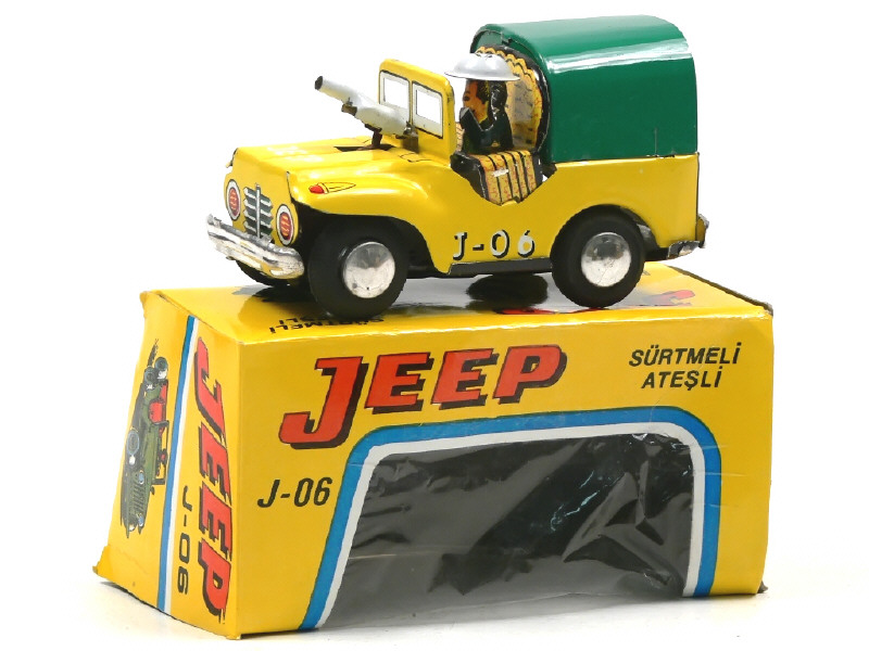 NE-KUR (TURQUIE) J-06 JEEP Bâchée en tôle lithographiée jaune citron, bâche verte