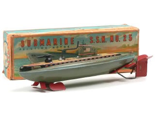 SAN - MARUSAN TOYS (JAPON) Sous-marin S.S.N.25 en tôle lithographiée gris vert, jaune & rouge
