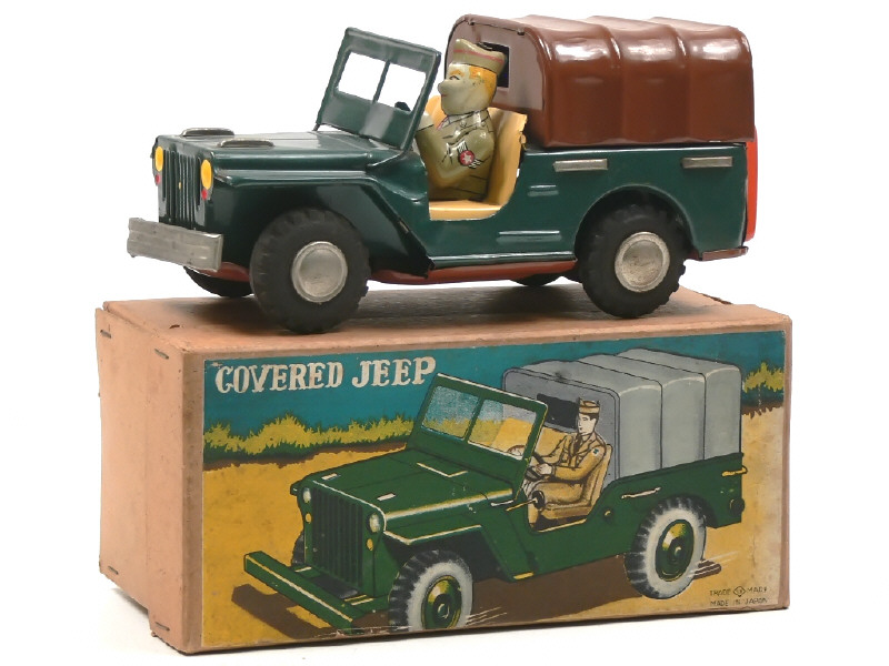 T.N. (JAPON) COVERED JEEP en tôle peinte vert & beige, bâche marron