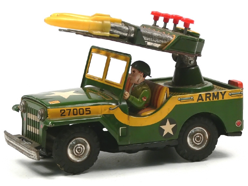 K (JAPON) JEEP Lance-missiles de l'armée américaine en tôle lithographiée vert & jaune