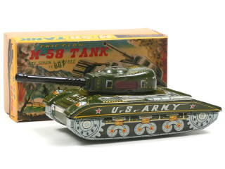 HARUSAME SEISAKUSHO (JAPON) M-58 Tank 'US ARMY' en tôle lithographiée kaki