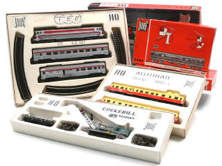 JOUEF 'HO' (FRANCE) 756E Coffret de train de voyageurs 'TRANS EUROP EXPRESS' gris métal & rouge