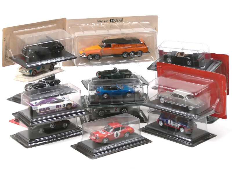 miniatures reproduisant les modèles : CITROEN, JAGUAR, HONDA, FORD, PORSCHE, MATRA, FERRARI, MITSUBISHI, TOYOTA, BMW, CHRYSLER, CHEVROLET, MAZDA, LINCOLN, LAMBORGHINI, MG, LANCIA, TRIUMPH, RENAULT & MERCEDES