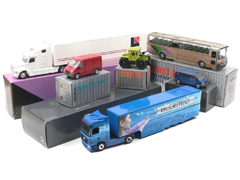 miniatures reproduisant les modèles MERCEDES & FREIGHTLINER - on y retrouve les marques NZG & CONRAD