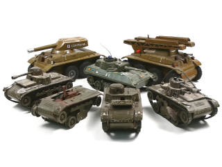JOUSTRA (FRANCE) Ensemble de 6 chars & un blindé lance-missiles kaki