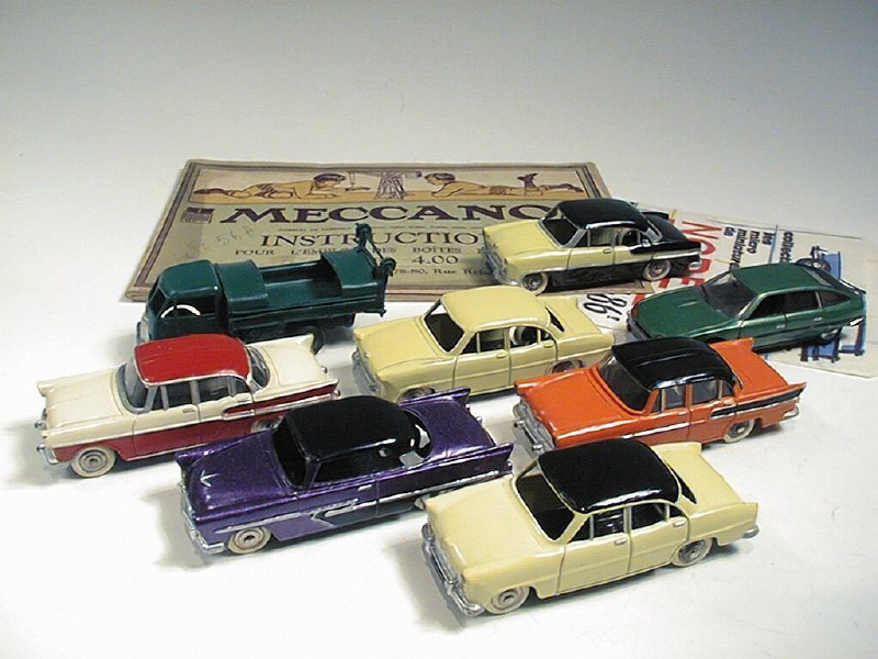 comprend 2 VERSAILLES, 3 CHAMBORD, 1 CITROEN CX, 1 PLYMOUTH BELVEDERE & 1 FORD Benne à ordures - on y joint une notice d'instruction MECCANO & un sachet commercial NOREV