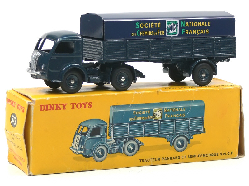 DINKY TOYS (FRANCE) 575 PANHARD Semi-remorque 'S.N.C.F' (version avec jantes concaves) bleu foncé (fond de l'écusson quadrillé)